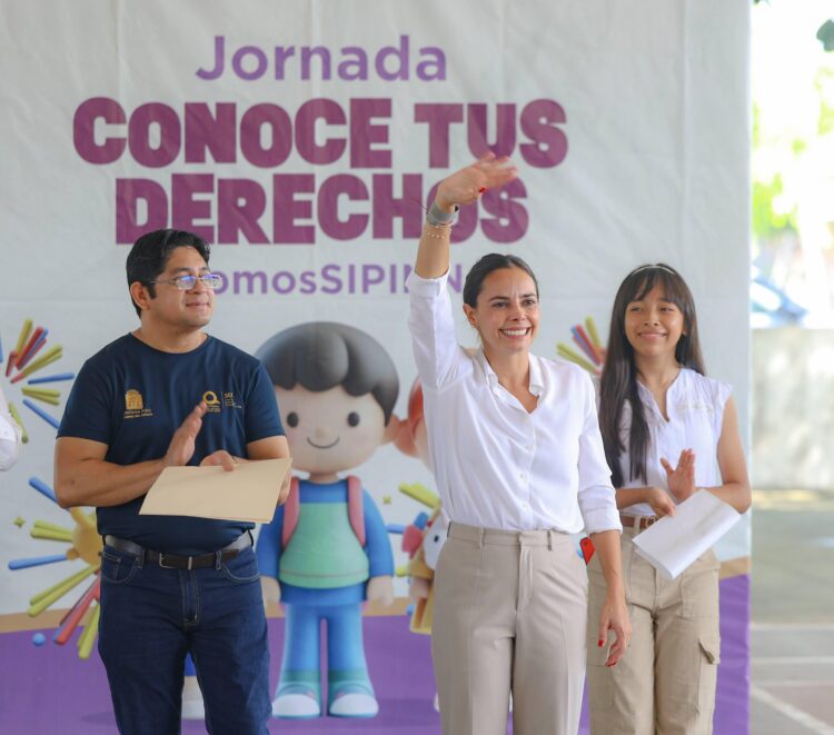 CANCÚN.- La Presidenta Municipal, Ana Paty Peralta, encabezó la jornada “Conoce tus Derechos”, impulsada mediante el Sistema Municipal de Protección Integral de Niñas, Niños y Adolescentes (SIPINNA) Benito Juárez, para más de 300 estudiantes de la escuela primaria urbana federal “Ek Balam”, a quienes enseñó a cuidar y defender sus derechos para vivir una vida libre de violencia.