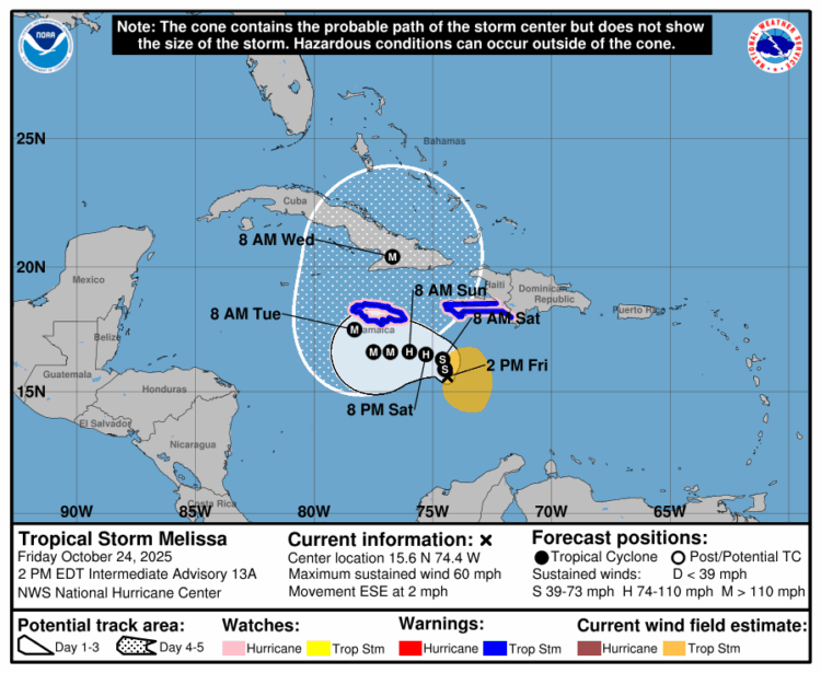 La tormenta tropical Melissa amenaza con convertirse en huracán durante el fin de semana, poniendo en alerta máxima a Haití, Jamaica y República Dominicana por el riesgo de lluvias torrenciales, inundaciones “catastróficas” y deslizamientos de tierra.