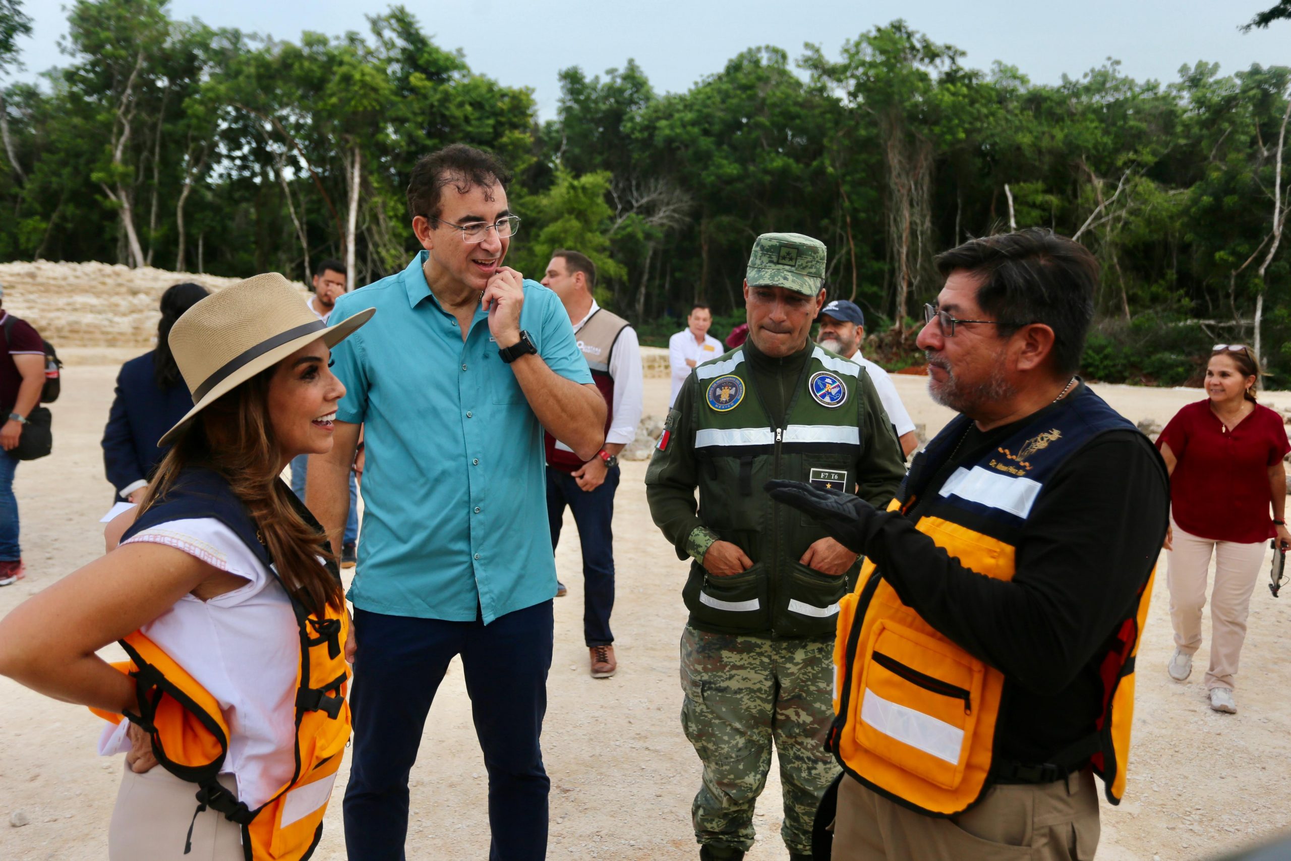 Acompañada de Margarito Molina, director del INAH Quintana Roo; Manuel Pérez Rivas, arqueólogo responsable del salvamento; y del coronel ingeniero constructor, Mario Acevedo Hernández, la gobernadora Mara Lezama recorrió la zona donde estará este nuevo Parque Arqueológico.