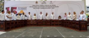 Bacalar.- En sesión solemne de Cabildo, la gobernadora Mara Lezama encabezó la conmemoración del 15 aniversario de la creación del municipio de Bacalar, donde destacó la riqueza histórica, cultural y natural de este destino, así como los avances logrados desde su constitución en 2011.