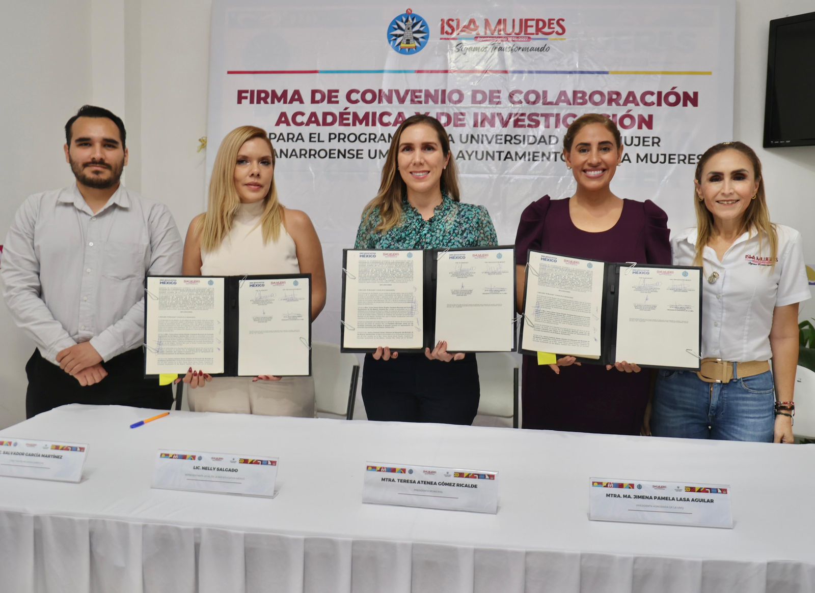 ISLA MUJERES.- Con el objetivo de fortalecer el compromiso con la profesionalización, el crecimiento académico y la mejora continua del servicio público, el Gobierno Municipal que encabeza la alcaldesa Atenea Gómez Ricalde, llevó a cabo la Firma del Convenio de Colaboración Académica y de Investigación con la Universidad de la Mujer Quintanarroense (UMQ) y la Red Educativa México, para formalizar una alianza orientada a ampliar las oportunidades educativas de las y los trabajadores del municipio y de sus familias.