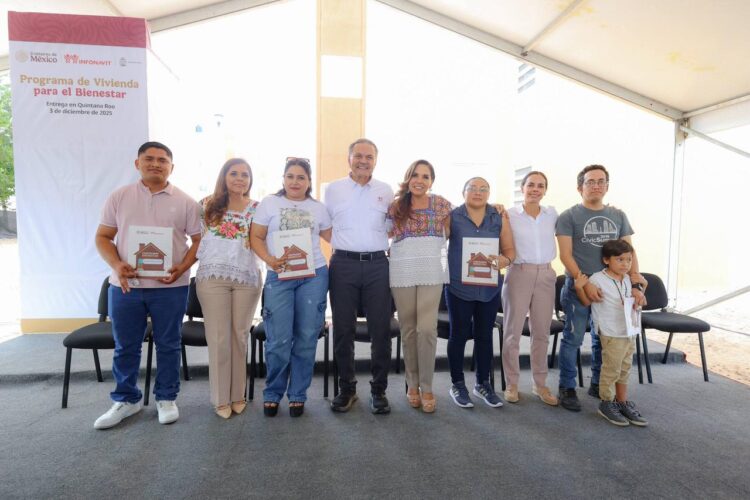 “Gracias a nuestra presidenta Claudia Sheinbaum y nuestra gobernadora Mara Lezama, así como el trabajo en coordinación de municipios e Infonavit, familias cancunenses pasarán esta navidad en su propia casa”, destacó en el fraccionamiento Paraíso Maya, donde se entregaron 125 viviendas.
