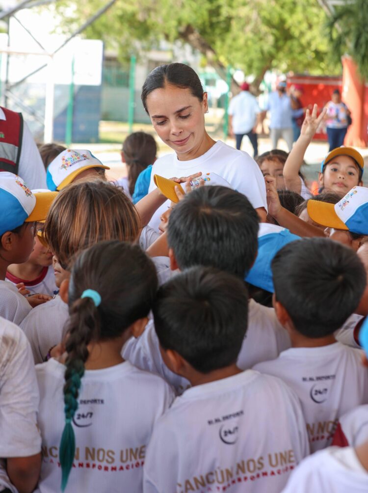 CANCÚN.- La Presidenta Municipal, Ana Paty Peralta, convivió con 470 niñas y niños que forman parte del curso de verano “Baaxlo ’ob Paalalo’ob” en su XXX edición 2025, que cada año se realiza a través del Instituto del Deporte, con la finalidad de destacar y potenciar la gran variedad de talento en el ámbito deportivo y a su vez, promover la integración comunitaria.