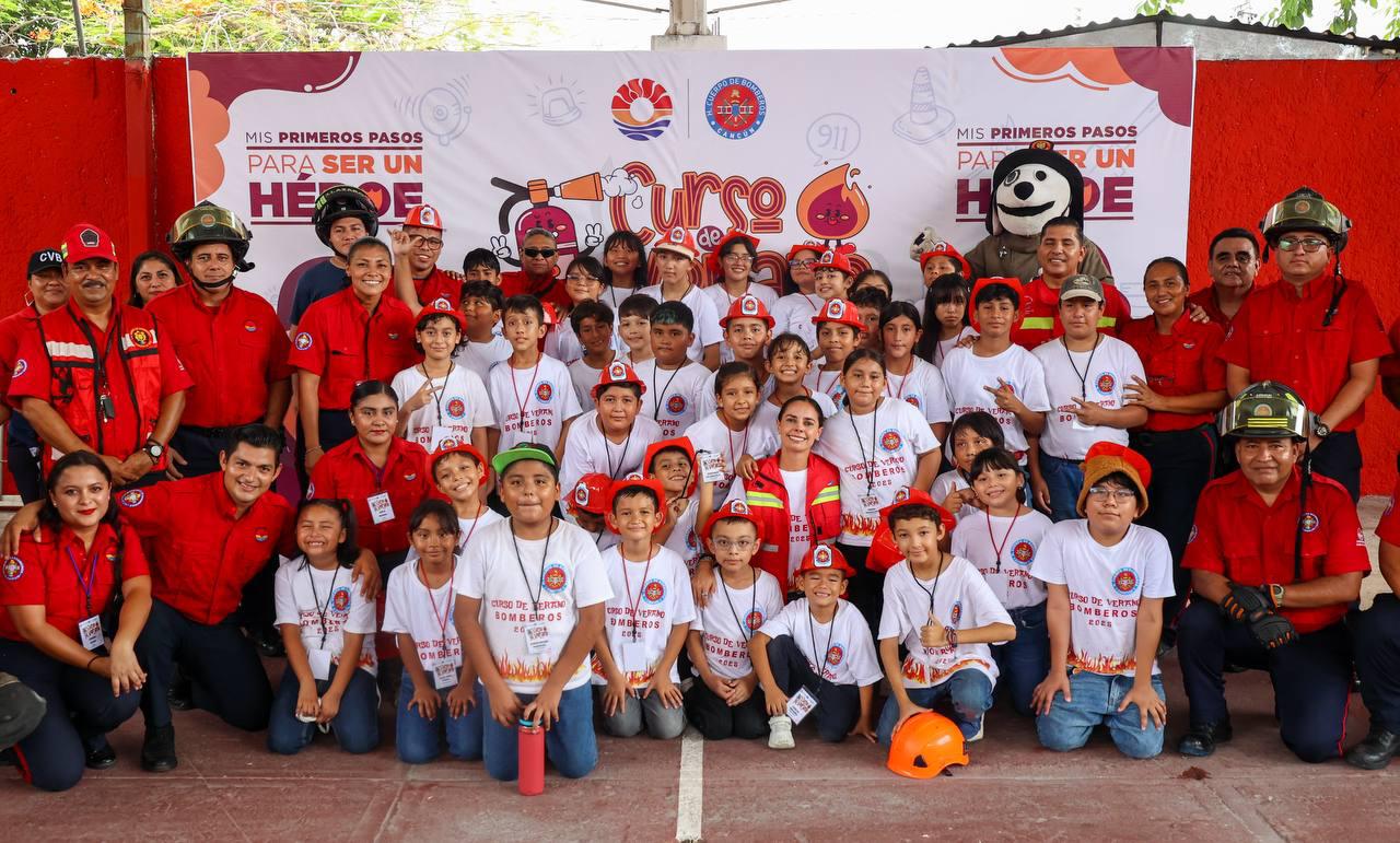 CANCÚN.- Con entusiasmo y amor, la Presidenta Municipal, Ana Paty Peralta, convivió con niñas y niños en el curso de verano 2025 “Mis primeros pasos para ser un héroe”, que imparte la Dirección General del Heroico Cuerpo de Bomberos, Rescate, Emergencias Médicas y Desastres, mediante actividades recreativas, dinámicas y lúdicas, con el objetivo de fomentar los valores como la empatía, la amistad, la responsabilidad y el trabajo en equipo, que son prioritarias para forjar a la niñez en la reconstrucción del tejido social.