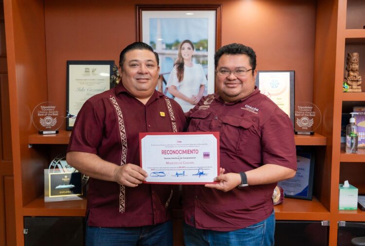 COZUMEL.- El gobierno municipal de Cozumel encabezado por el presidente municipal, José Luis Chacón Méndez, fue reconocido por el Instituto de Acceso a la Información y Protección de Datos Personales del Estado de Quintana Roo (IDAIPQROO) por sus buenas prácticas en el manejo transparente de los datos de interés público.