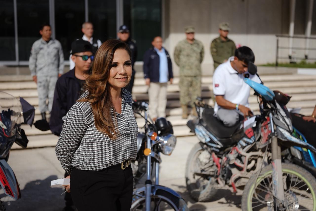 La gobernadora Mara Lezama también entregó a las y los propietarios de los vehículos recuperados, 8 motos y un automóvil, un chip GPS para la ubicación de unidades, además de que se les condonó el pago de arrastre, corralón y las multas; también recibieron un permiso provisional para circular, debido a que en algunos casos intentaron borrar el número de serie.