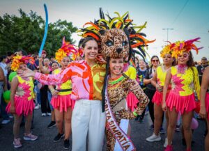 En su interacción a pie de la arteria, acompañada por el secretario general del Ayuntamiento, Pablo Gutiérrez Fernández; el director del Instituto dr la Cultura y las Artes, Carlos López Jiménez, la Primera Autoridad Municipal bailó al ritmo de salsa, cumbia, merengue y otros géneros tropicales propios del Caribe, con las comparsas que desfilaron con gran entusiasmo y les agradeció ser el alma y corazón de la gran celebración, ya que todos los días pusieron su empeño por deleitar a la audiencia y llevar el espíritu de la festividad.