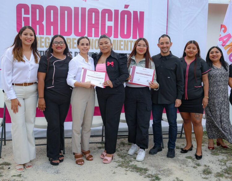 CANCÚN.- Con gran orgullo, la Presidenta Municipal, Ana Paty Peralta, encabezó la ceremonia de graduación y entrega de 120 reconocimientos a 64 mujeres y hombres quienes culminaron su formación en los cursos y talleres de autoempleo impartidos por el Instituto Municipal de la Mujer (IMM), reafirmando su compromiso con el empoderamiento femenino, su independencia económica y la construcción de una ciudad más justa.