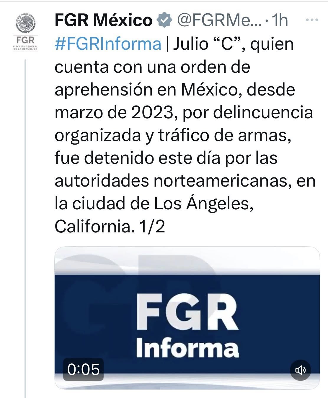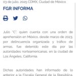 Pero la historia no termina ahí. Hoy, la Fiscalía General de la República (FGR) de México emitió un comunicado informando que Chávez Jr. cuenta con una orden de aprehensión desde marzo de 2023 por delitos de delincuencia organizada, tráfico de armas, municiones y explosivos. Sí, leyó bien: ¡desde hace dos años!… y no sabía dónde estaba.