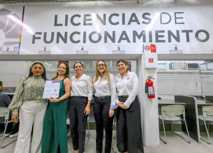 CANCÚN.- Con gran orgullo y emoción la Presidenta Municipal, Ana Paty Peralta, entregó por primera vez en la historia de Cancún, permisos provisionales de Licencia de Funcionamiento a comerciantes que viven en el ejido de Alfredo V. Bonfil y en las colonias en proceso de regularización.
