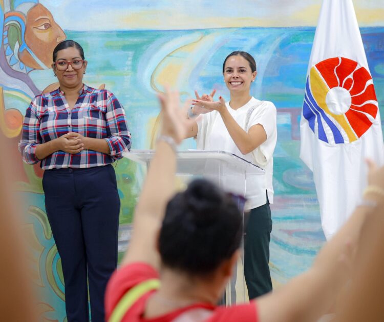 CANCÚN.- “Estamos aquí para reconocerlas y felicitarlas por esa energía y esa pasión por salir adelante, y también para decirles que no están solas, cuentan con este gobierno que las respalda, que las acompaña, que siempre busca nuevas formas de abrirles oportunidades”, dijo la Presidenta Municipal, Ana Paty Peralta, en el acto protocolario de “Ellas Avanzan”, donde se entregó 15 Tarjetas Beneficios a mujeres con discapacidad auditiva y 14 licencias de funcionamiento a mujeres del programa Ellas Facturan.