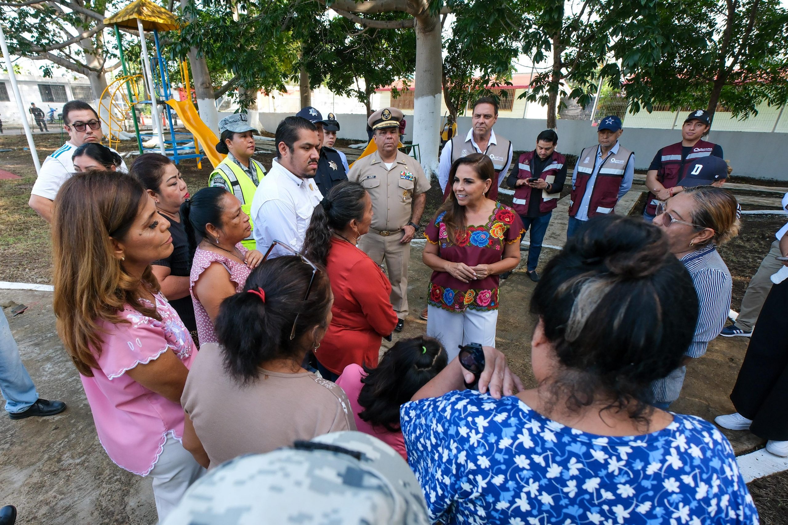 Acompañada de la presidenta honoraria del DIF Quintana Roo, Verónica Lezama Espinosa, y de la señora Reyna -quien le pidió a Mara Lezama la transformación del parque que estaba en total abandono-, la titular del Ejecutivo dijo que “esto hace un gobierno de la Cuarta Transformación, escuchar y atender de inmediato a las y los vecinos”.