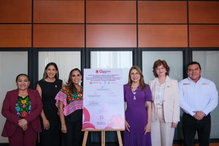 Mediante la firma del “Nuevo Acuerdo por el Bienestar y Desarrollo de Quintana Roo a Favor de la Educación Media Superior Dirigido a las Mujeres”, celebrada en Palacio Nacional, permitirá que 2 mil mujeres quintanarroenses, en una primera etapa, puedan acreditar el nivel bachillerato, también en lengua Maya, a través del programa Mujer Es Aprender, impulsado por la SEMUJERES.