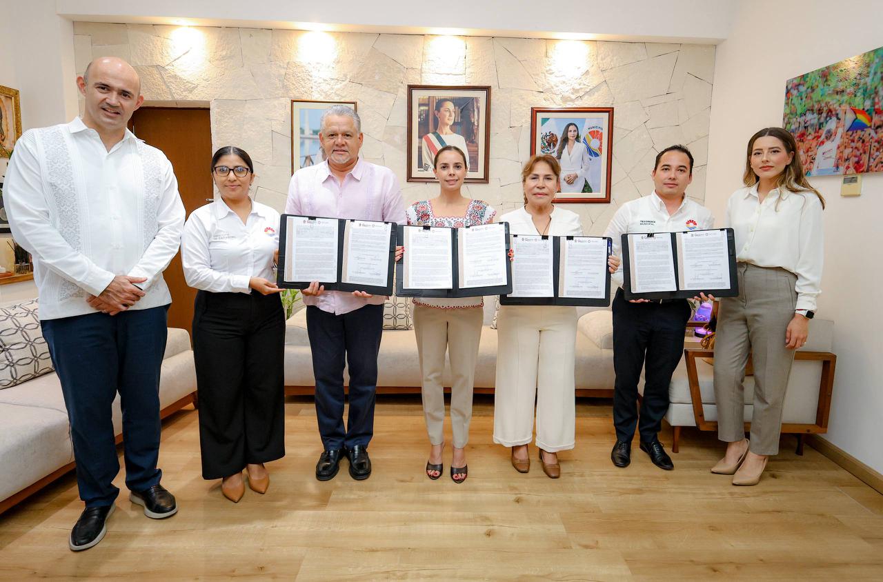 CANCÚN.- La Presidenta Municipal, Ana Paty Peralta, firmó un convenio de colaboración administrativa con el Instituto Geográfico y Catastral del Gobierno del Estado, para la consolidación y uso de la Plataforma Estatal de Información Catastral y Registral, lo que permitirá mejorar la dirección de Catastro, en beneficio de los ciudadanos.
