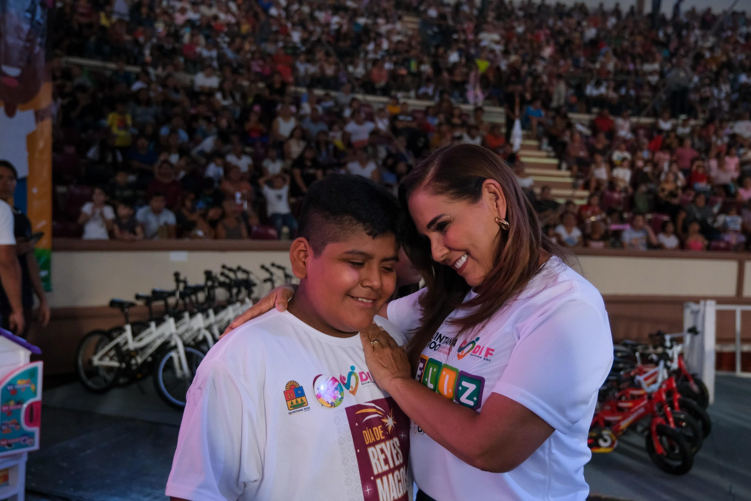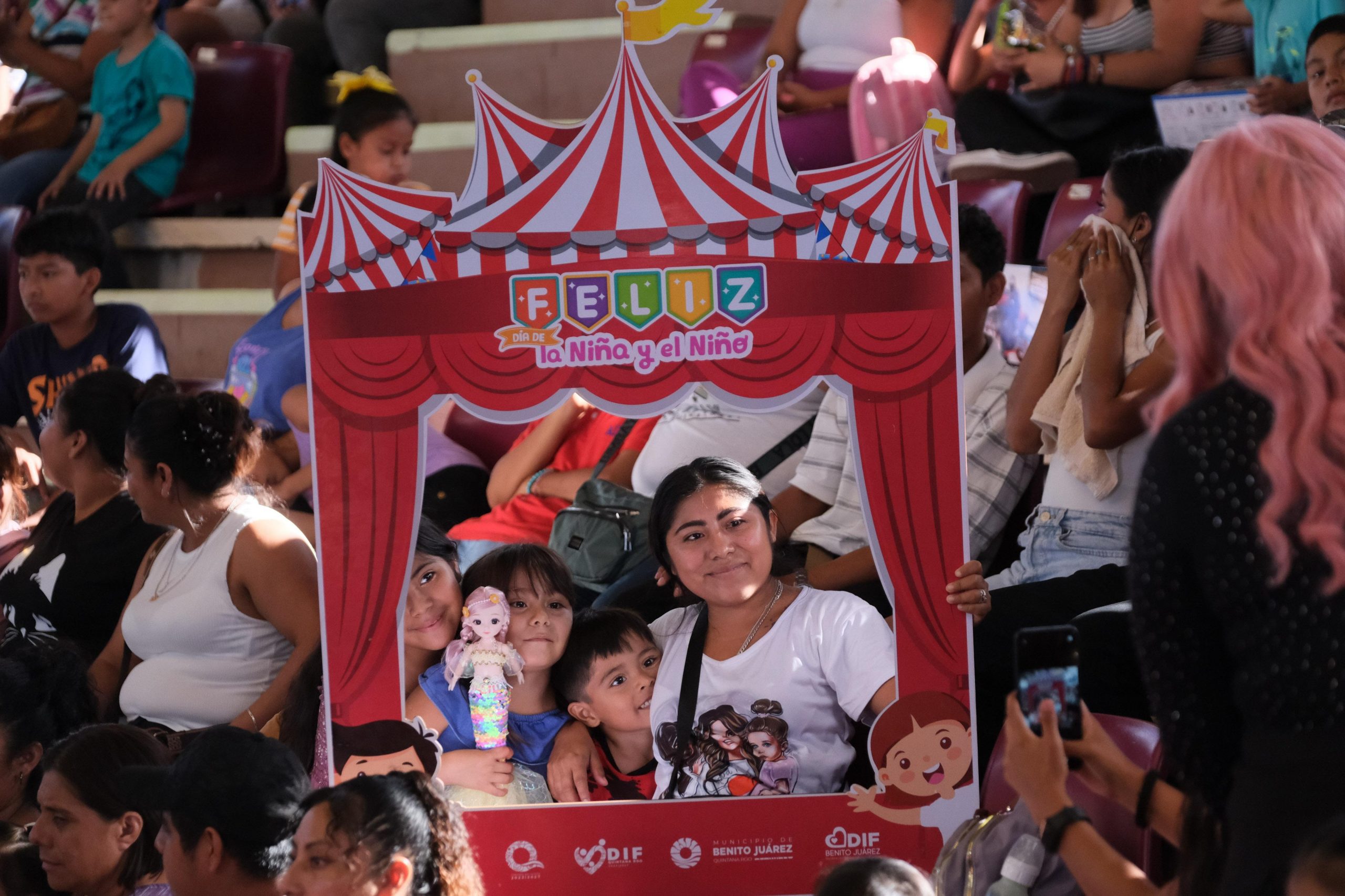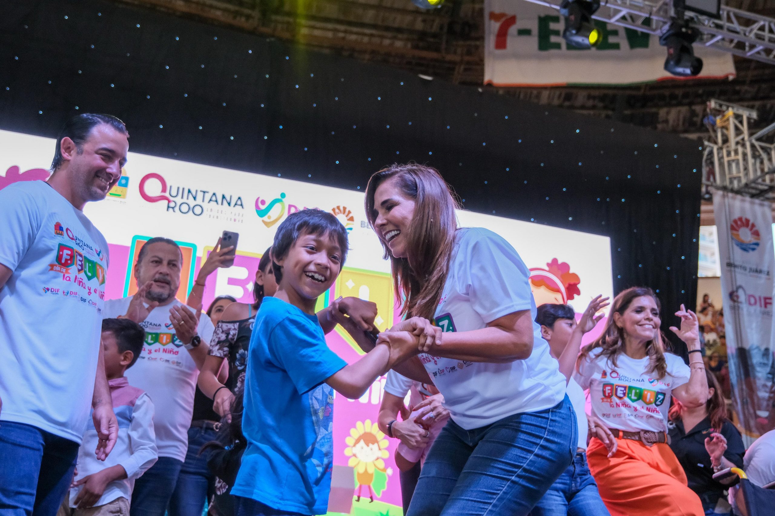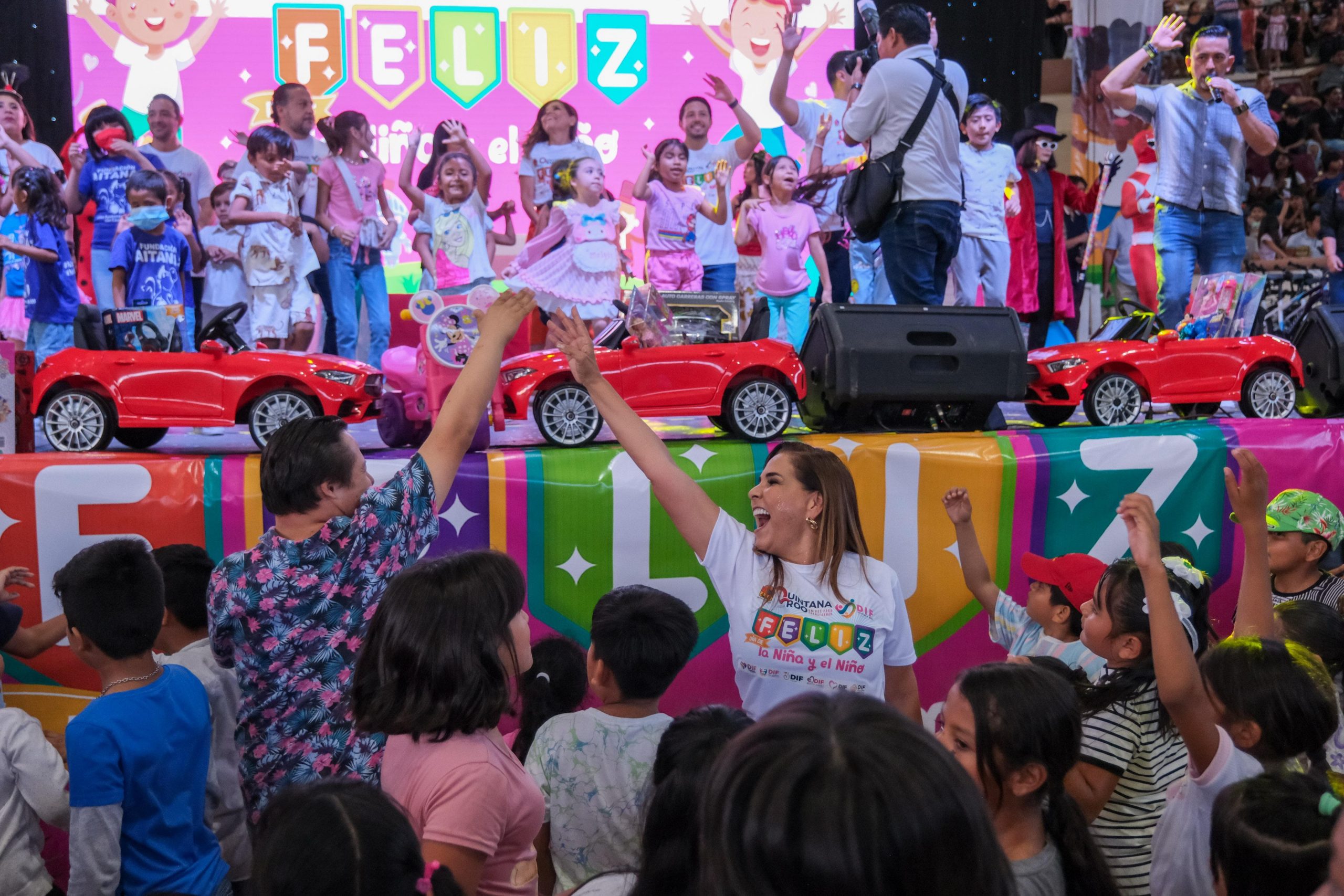 CANCÚN.- La gobernadora Mara Lezama Espinosa, junto a la presidenta honoraria del Sistema DIF Quintana Roo, Verónica Lezama Espinosa, y la presidenta municipal, Ana Paty Peralta, celebraron a la niñez acompañados de sus familias el “Día de la Niña y el Niño”, en la Plaza de Toros de esta ciudad.