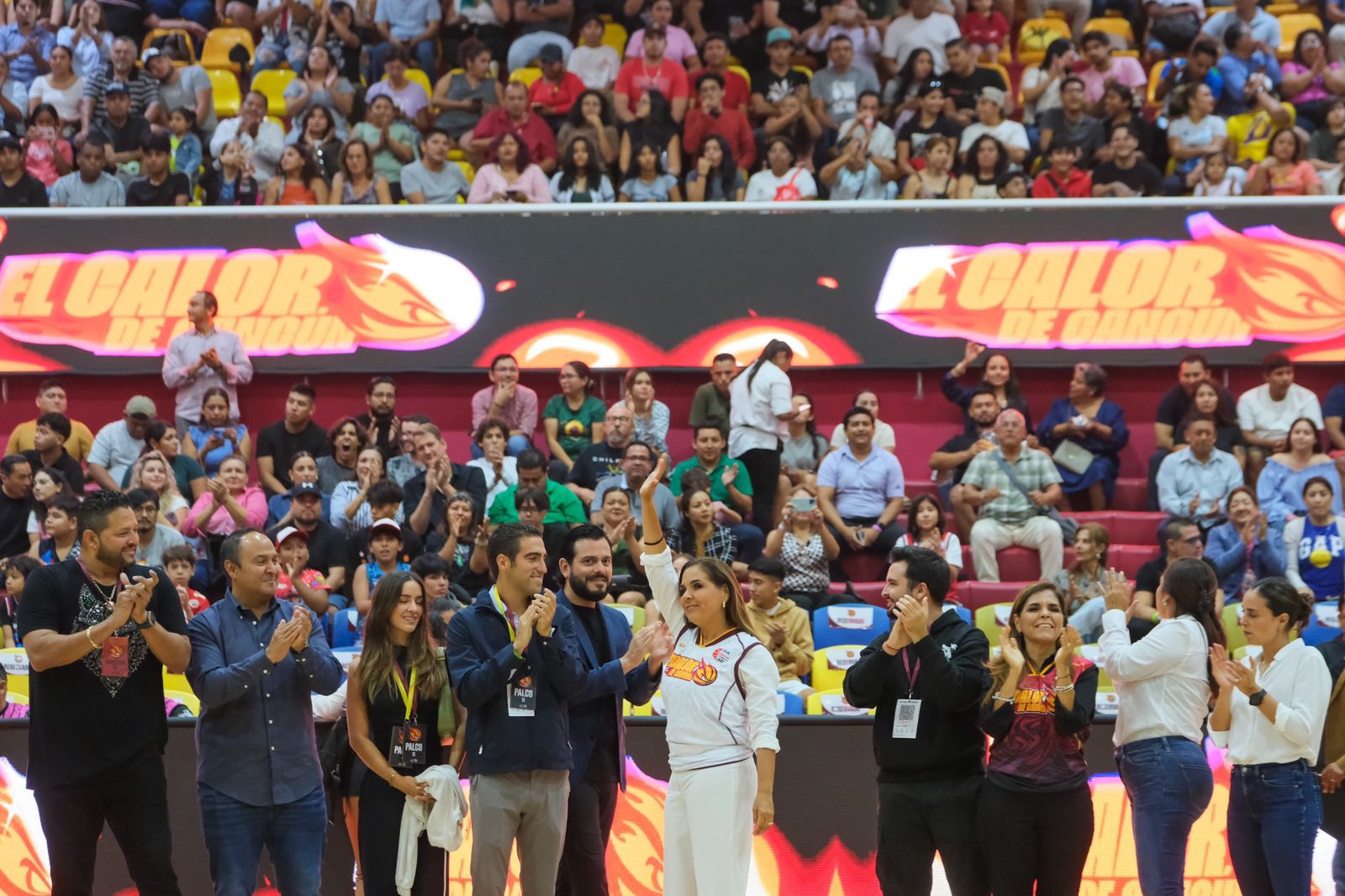 Durante la inauguración, la gobernadora estuvo acompañada de Ana Paty Peralta, presidenta municipal de Benito Juárez; Sergio Ganem Velázquez, presidente de la LNBP; Roberto Alvarado, gerente general de El Calor de Cancún; Eric Arcila Arjona, Diputado Electo por el Distrito 07; Irazú Sarabia May, secretaría de Obras Públicas (SEOP); Eugenio Segura Vázquez, secretario de Finanzas y Planeación (SEFIPLAN); además de Alonso Izaguirre López, comisionado general de la LNBP; y Jacobo Arzate Hop, presidente de la Comisión del Deporte de Quintana Roo (CODEQ).