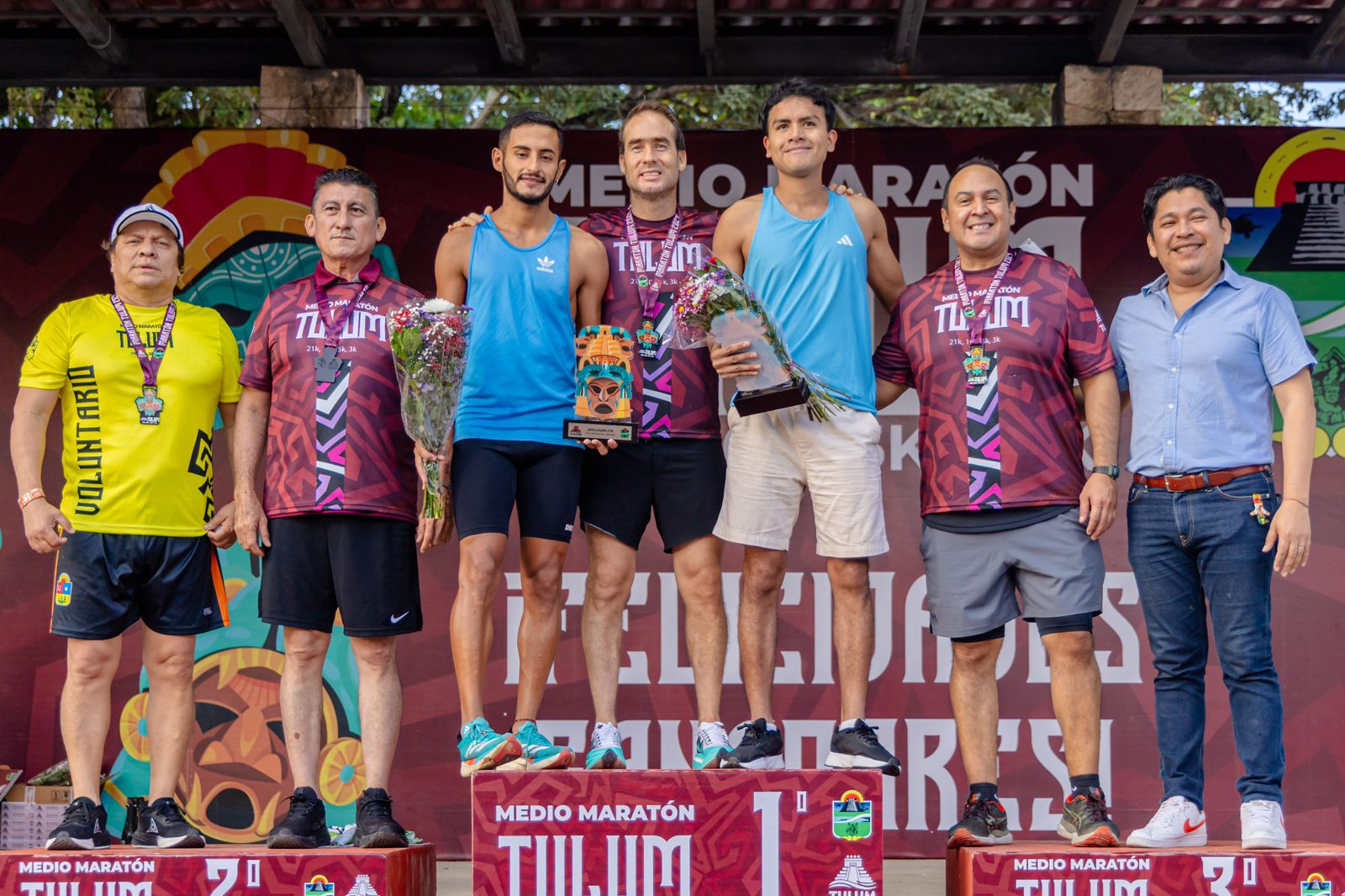 TULUM.- Con la participación de 950 atletas provenientes de todo el Estado, el País y el mundo, este domingo se llevó a cabo el Medio Maratón Tulum 2024, un evento de primer nivel que promovió la salud, el deporte y la convivencia familiar.