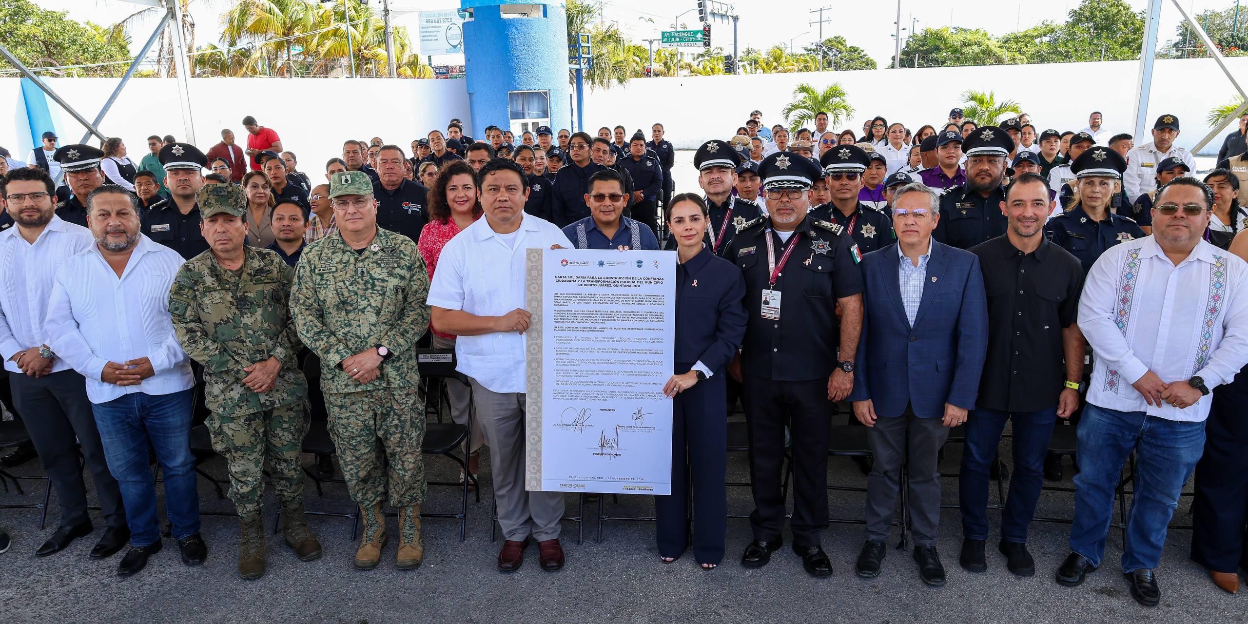 CANCÚN.- “Hoy damos un paso decisivo en la transformación de nuestra policía y hablamos de cambios de fondo, estructurales, renovar la institución desde fondo para dejar un legado duradero en la policía de Cancún”, afirmó la Presidenta Municipal, Ana Paty Peralta, en el arranque de la Certificación Policial Ciudadana (CERTIPOL), como parte de los trabajos para crear una corporación certificada sin espacios para la corrupción.