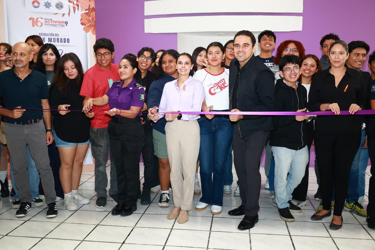 CANCÚN.- En el marco de la campaña “16 Días de Activismo: Unidos contra la Violencia hacia las Mujeres y las Niñas”, la Presidenta Municipal, Ana Paty Peralta, instaló un Buzón Morado en la Universidad Tecnológica de Cancún (UT), como una acción que busca promover un ambiente de respeto dentro de la comunidad estudiantil y brindar apoyo a quienes lo necesiten, para que puedan vivir de manera plena y libre de violencia.