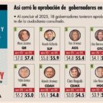 El estudio señala que la aprobación promedio nacional de los 32 mandatarios fue de 49.7%, cifra inferior al umbral del 50%, lo que subraya que la mayoría de los gobernadores no logró rebasar esa línea. En contraste, Mara Lezama se mantuvo todo el año por encima del 50%, consolidándose como un caso atípico de estabilidad en la evaluación ciudadana.