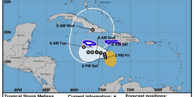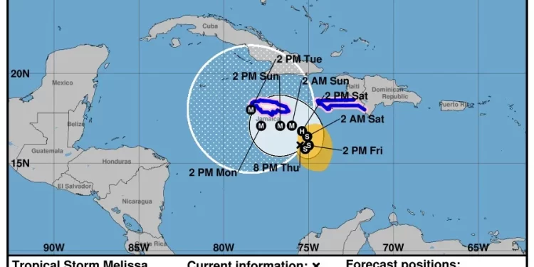La tormenta tropical Melissa amenaza con convertirse en huracán durante el fin de semana, poniendo en alerta máxima a Haití,...