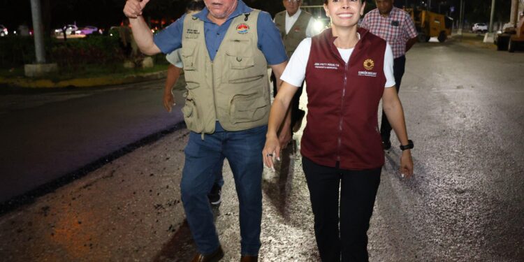 CANCÚN.- La Presidenta Municipal, Ana Paty Peralta, realizó un recorrido de supervisión en la obra de reconstrucción de pavimento asfáltico...