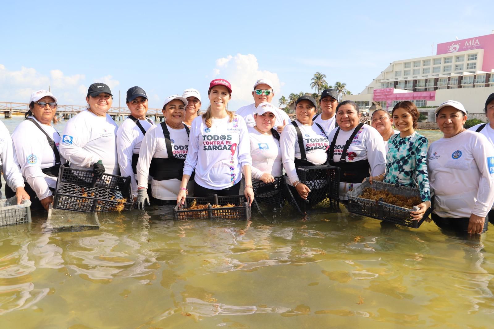 ISLA MUJERES.- Con atención inmediata y un fuerte espíritu de solidaridad, el Gobierno Municipal de Isla Mujeres, que encabeza la Presidenta Municipal, Atenea Gómez Ricalde, respondió de manera oportuna al recale atípico de sargazo registrado en la zona de El Riito, a un costado de Playa Norte, donde se recolectaron cerca de 100 toneladas del alga marina.