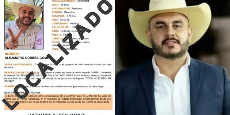 MICHOACÁN.- El ex presidente municipal de Zinapécuaro, Michoacán, Alejandro Correa Gómez, fue localizado con vida este jueves tras ser reportado...