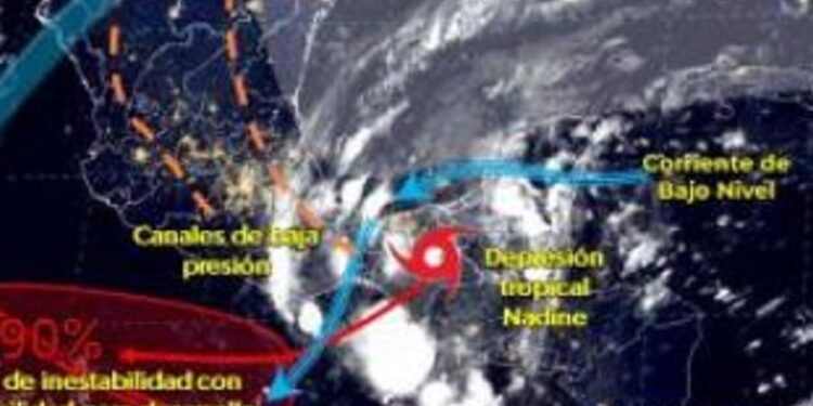 CDMX.- La depresión tropical Nadine mantendrá en la próximas horas de este domingo un temporal de lluvias puntuales torrenciales (de 150 a...