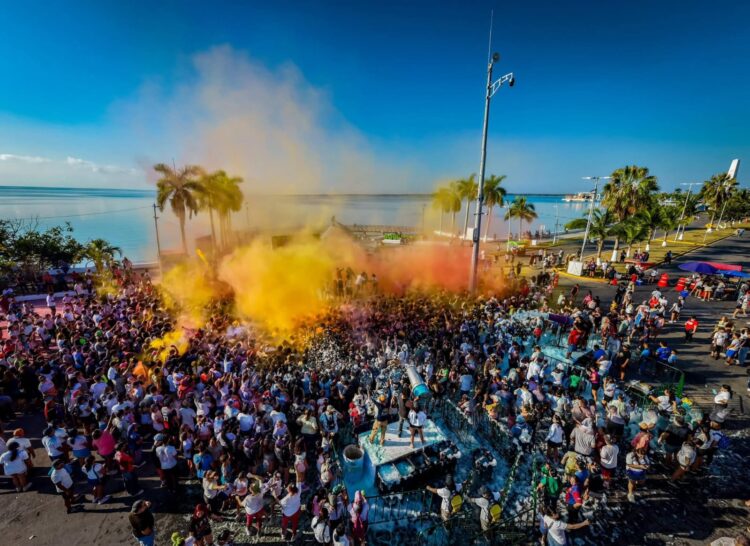 CHETUMAL.- Con la participación de más de mil personas, entre niñas, niños, jóvenes y muchas familias, el Boulevard Bahía de la capital del estado se pintó de colores y resonó con buena música en la espectacular carrera Run Colors del Carnaval Chetumal 2026.