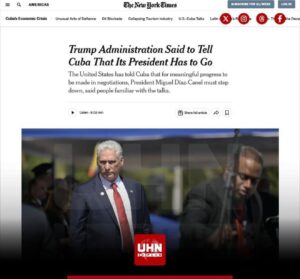 En paralelo, reportes del New York Times citados por medios internacionales indican que la administración estadounidense habría transmitido a negociadores cubanos una condición central para avanzar en conversaciones: la salida del poder de Miguel Díaz-Canel, así como la destitución de varios dirigentes históricos del Partido Comunista y la liberación de presos políticos.
