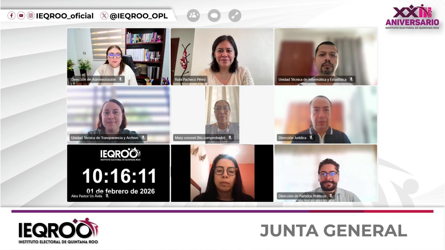 CHETUMAL.- La Junta General del Instituto Electoral de Quintana Roo (IEQROO) celebró una sesión extraordinaria con carácter de urgente, encabezada por la consejera presidenta Rubí Pacheco Pérez, en la que se aprobaron acuerdos relevantes para el funcionamiento institucional.