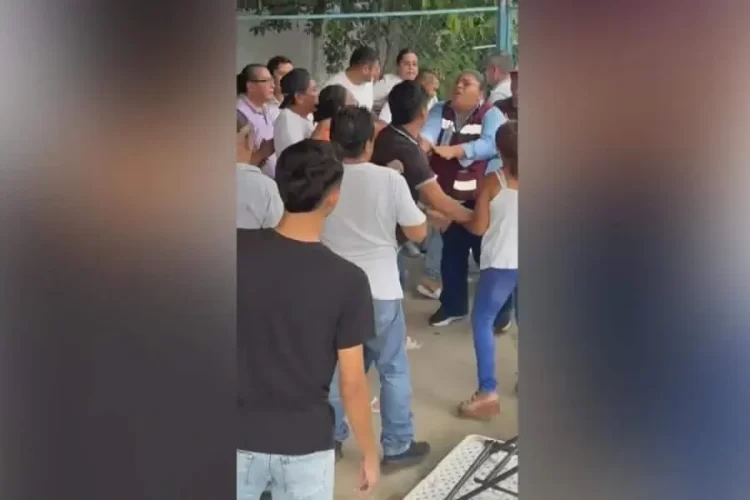 En otro de los clips, presuntamente grabado en la colonia Gaviotas, se aprecia a un grupo de individuos forcejeando con los organizadores para despojarlos de las urnas. En medio del caos, un hombre empuja bruscamente y casi golpea a una mujer que portaba una casaca de Morena.